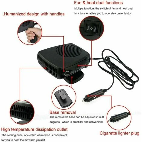 RAFFREDDATORE E RISCALDATORE PER AUTO: questo sbrinatore per auto non solo può riscaldarsi in inverno, riscaldandoti in macchina, ma può anche eliminare lo sbrinamento e l’appannamento dal parabrezza del tuo veicolo, mantenendo la vista chiara durante la guida. può rinfrescare la tua auto, farti sentire bene in macchina.
