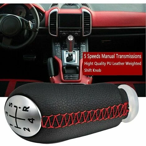 Realizzato in pelle PU di alta qualità con punto in linea rosso, impugnatura confortevole, design di forma unico per garantire un cambio di marcia regolare durante la guida.