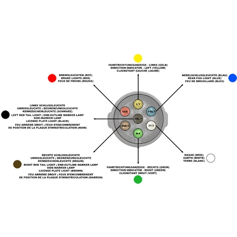 Con il collegamento elettrico possono essere attivate diverse funzioni come le luci d’arresto, gli indicatori di direzione, il retronebbia, le luci di posizione e l’illuminazione della targa. Un ulteriore polo è la massa.