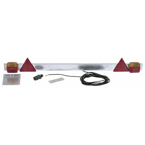 Questa barra con fanali posteriori del marchio Ama Imel ha una lunghezza regolabile che va dai 1180 mm fino ai 1720 mm. È in grado di sviluppare una tensione di 12 V, svolge 4 funzioni luminose differenti: segnalatore di posizione, indicatore di direzione, stop e luce di targa. Kit comprensivo di tutte le lampadine, portatarga e staffe per il fissaggio. Barra dotata di cavo a 5 poli lungo 7 m e di cavo di 2 m tra i fanali con spine a 7 poli.