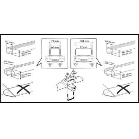 Sistema di aggancio alle barre: doppio set di cavallotti (4×60 mm + 4×92 mm)