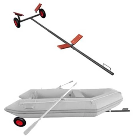 Carrello porta barca pratico e maneggevole, per barche fino a 4.6 metri e con peso fino a 160 kg. Ideale per trasporto gommoni, barche da pesca, piccole vele etc. Carrellino lungo 320 cm. e regolabile in 3 posizioni, con solide ruote e maniglia che lo rendono maneggevole da tirare. Gli pneumatici si smontano velocemente rendendo questo carrellino, a sua volta smontabile in pochi minuti, molto pratico da trasportare caricandolo nel bagagliaio.