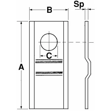 Coltello piegato per falciatrice rotativa 105x47x3 mm, con foro diametro 21 mm. Adattabile al riferimento originale PZ CM120.