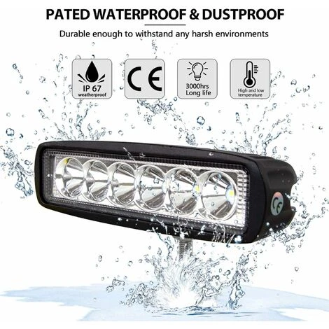Luminosità: i chip LED di alta qualità da 6 pezzi * 3 W con una temperatura di colore di 6000 K illuminano la tua strada al buio, ofITendoti un’esperienza di guida più sicura e confortevole. La barra luminosa può essere utilizzata per 12V-24V