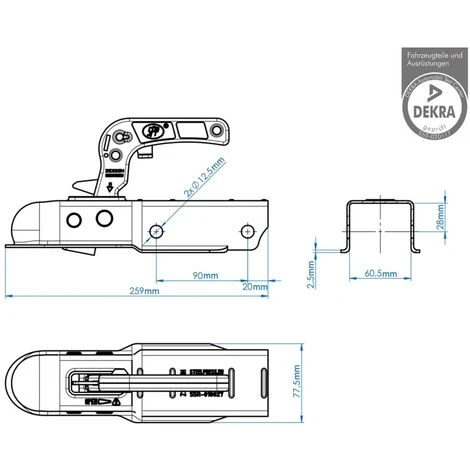 Grazie al rivestimento zincato, è molto resistente e antiruggine. Il gancio è adatto per rimorchi fino a 750 kg.