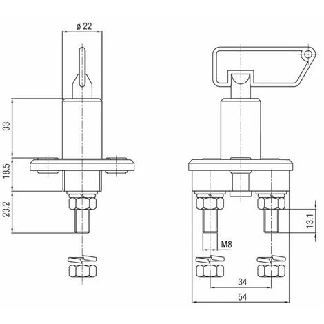 Interruttore staccabatteria ad azionamento manuale con chiave estraibile.