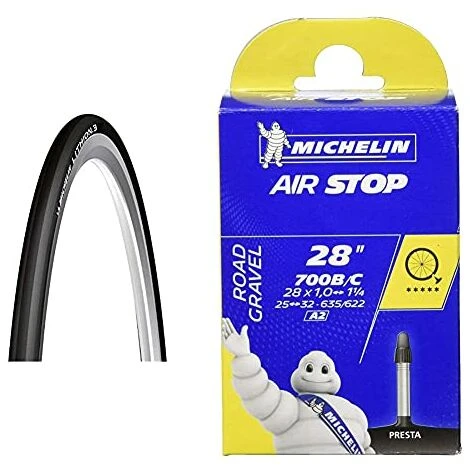 Michelin Lithion.3, Copertura Per Bicicletta Unisex Adulto, Nero, 700X25 & Airstop Camera D’Aria Per Bicicletta (700 C, 25-32 Mm Con Valvola Francese 40 Mm)