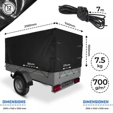 - CARATTERISTICHE: Il telone per rimorchio misura 2100 x 1140 x 1100 mm e pesa 7,5 kg