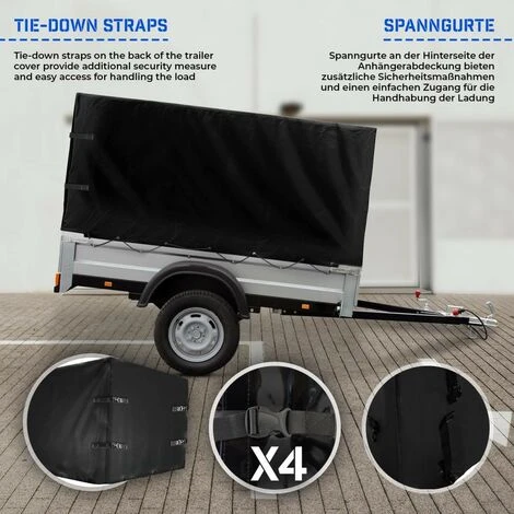 - QUATTRO FISSAGGI: Le cinghie di fissaggio sulla parte posteriore del telo di protezione per rimorchio forniscono ulteriori misure di sicurezza e un facile accesso per carico o scarico della merce
