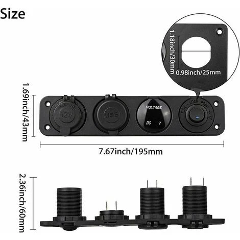 Presa multipla per caricabatterie 4 in 1 – Questa presa multipla da 12 V è dotata di una presa USB RV da 12 V + voltmetroschermo digitaleLED + una presa accendisigari 12V + un interruttorealtalenaLED Comodo da installare e utilizzare. anche staccabile per sostituire altre spine di ricarica o qualcosa di adatto.