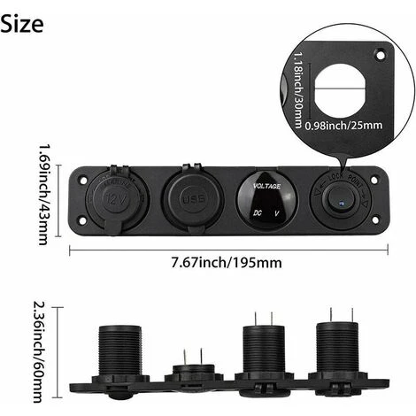 Pannello presa di ricarica 4 in 1 – Questo pannello presa da 12 V è progettato con presa RV USB da 12 V + voltmetro con display digitale a LED + presa accendisigari da 12 V + interruttore a bilanciere LED per una facile installazione e utilizzo. Rimovibile anche per sostituire altre prese di ricarica o qualsiasi altra presa adatta.