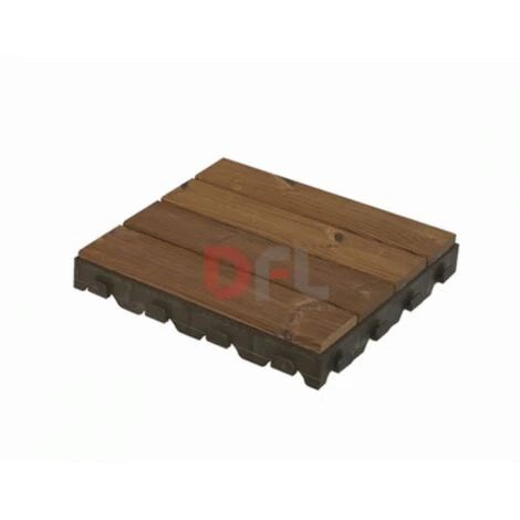In legno di pino svedese naturale. Termo-trattato, questo prodotto è impermeabile grazie ad uno speciale processo di lavorazione che lo rende robusto, resistente agli agenti atmosferici ed inalterabile nel tempo. Ogni piastrella è fissata su robuste griglie drenanti incastrabili che garantiscono stabilità su qualsiasi superficie piana. Adatta per giardini, bar, aree di passaggio e spiagge.