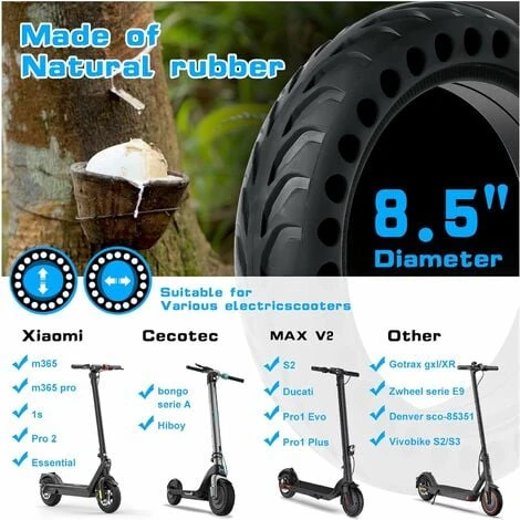 “【MATERIALE ECCELLENTE】: i pneumatici pieni sono realizzati in gomma naturale di alta qualità. Non tossico, inodore e non sbiadisce. Con un design solido, è più resistente all’usura e alla perforazione, molto durevole e robusto e ha una vita utile più lunga.【SICURO E AFFIDABILE】: non è necessaria la camera d’aria e non è necessario gonfiarla, eliminando così il rischio di foratura per te. Lo strato interno del pneumatico ha un anti-caduta, in modo che il pneumatico e il mozzo è ben collegato. La struttura della scanalatura della superficie, una presa più forte, previene efficacemente lo scivolamento, offre la massima sicurezza. 【DECOMPRESSIONE RESISTENTE AGLI URTI】: questo pneumatico solido adotta uno speciale design a nido d’ape, che può dissipare rapidamente il calore e rilasciare la pressione. Eccellente smorzamento forza ed elasticità garantiscono una migliore resistenza agli urti e un effetto di decompressione.【PERFORMANCE ECCELLENTI】: I nostri pneumatici pieni sono extr molto flessibile e in grado di resistere a tutte le variazioni di pressione. Ti offre una guida più fluida e fluida anche su strade sconnesse. 【AMPIA APPLICAZIONE】: questo pneumatico solido è adatto per pneumatici anteriori e posteriori di scooter elettrici con un diametro del pneumatico di 8,5 pollici. Utilizzato principalmente per scooter elettrico Xiaomi Mijia M365/M365 pro. Adatto anche ai modelli della serie Cecotec/Gotrax/Ducati da 8,5 pollici… (controllare le dimensioni del pneumatico prima dell’acquisto)”