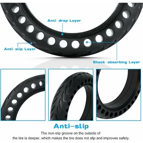 “【MATERIALE ECCELLENTE】: i pneumatici pieni sono realizzati in gomma naturale di alta qualità. Non tossico, inodore e non sbiadisce. Con un design solido, è più resistente all’usura e alla perforazione, molto durevole e robusto e ha una vita utile più lunga.【SICURO E AFFIDABILE】: non è necessaria la camera d’aria e non è necessario gonfiarla, eliminando così il rischio di foratura per te. Lo strato interno del pneumatico ha un anti-caduta, in modo che il pneumatico e il mozzo è ben collegato. La struttura della scanalatura della superficie, una presa più forte, previene efficacemente lo scivolamento, offre la massima sicurezza. 【DECOMPRESSIONE RESISTENTE AGLI URTI】: questo pneumatico solido adotta uno speciale design a nido d’ape, che può dissipare rapidamente il calore e rilasciare la pressione. Eccellente smorzamento forza ed elasticità garantiscono una migliore resistenza agli urti e un effetto di decompressione.【PERFORMANCE ECCELLENTI】: I nostri pneumatici pieni sono extr molto flessibile e in grado di resistere a tutte le variazioni di pressione. Ti offre una guida più fluida e fluida anche su strade sconnesse. 【AMPIA APPLICAZIONE】: questo pneumatico solido è adatto per pneumatici anteriori e posteriori di scooter elettrici con un diametro del pneumatico di 8,5 pollici. Utilizzato principalmente per scooter elettrico Xiaomi Mijia M365/M365 pro. Adatto anche ai modelli della serie Cecotec/Gotrax/Ducati da 8,5 pollici… (controllare le dimensioni del pneumatico prima dell’acquisto)”