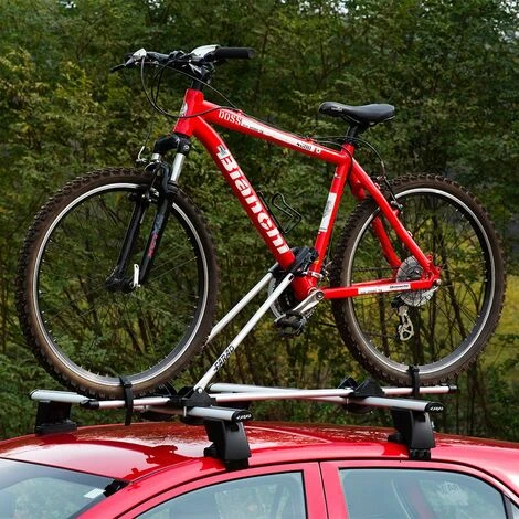 - Portabici universale da tetto adatto per il montaggio specifico su barre portatutto (sezione max. 80 x 40 mm)