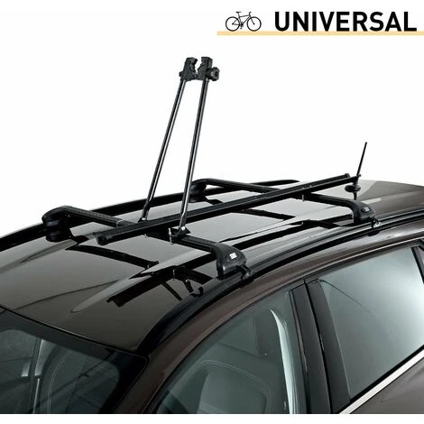 - Portabici universale da tetto adatto per il montaggio specifico su barre portatutto (sezione max. 6 x 4 cm)