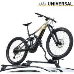 - Portabici universale da tetto adatto per il montaggio specifico su barre portatutto (sezione max. 80 x 40 mm)