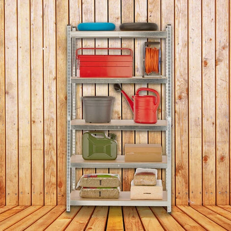 Questo scaffale ad altaportata offre molto spazio per mettere in ordine ed è ideale per sopportareanche grandi pesi. Ad esempio come mobile in cantina, in officina, in garage, nelladispensa o nel capanno in giardino. Riponi sulle mensole pneumatici,macchinari, attrezzi e altri oggetti pesanti. Puoi montare i 5ripiani in altezze variabili a seconda delle tue esigenze. Se necessario puoianche dividere la scaffalatura al centro e avere così 2 scaffali più bassi.