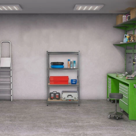 Questo scaffale offre moltospazio per mettere in ordine ed è ideale per sopportare anche grandi pesi, siain cantina, in officina, in garage, nella dispensa e ovunque ne abbiatebisogno. Riponi sulle mensole pneumatici, macchinari, attrezzi e altri oggettipesanti. Puoi montare i 4 ripiani in altezze variabili a seconda delle tueesigenze. Se necessario puoi anche dividere la scaffalatura al centro e averecosì 2 parti da usare come piano di lavoro. Grazie al facile sistema adincastro si monta in un attimo.