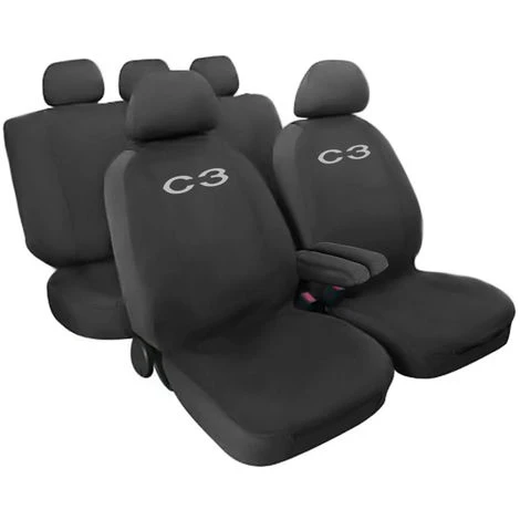 SET COPRISEDILI COMPATIBILI PER AUTO C3 PORTE MADE IN ITALY FODERE TINTA UNITA GRIGIO SCURO