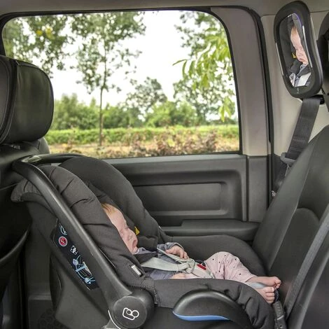 In questo modo potrete osservare qualsiasi movimento del vostro bambino attraverso lo specchietto retrovisore dell’auto. Questo specchio di sicurezza per bambini si adatta praticamente a qualsiasi auto con poggiatesta grazie alle cinghie di montaggio a strappo incluse, ma può anche essere fissato al box per bambini o persino al loro lettino.