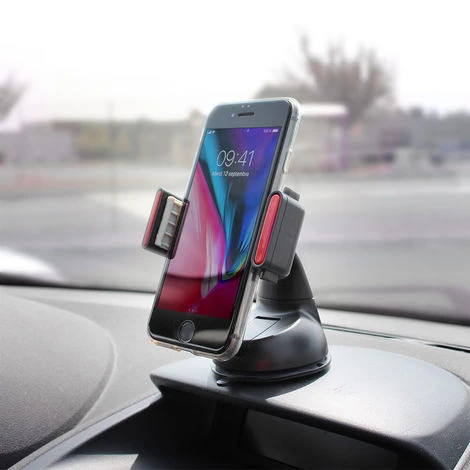 Grazie alla ventosa infatti, sarà possibile fissare lo smartphone (larghezza da 54 a 84mm) sul cruscotto o sul parabrezza.
