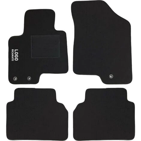 Set tappeti auto su misura in moquette con battitacco in plastica, anteriori e posteriori, con logo ricamato sul tappetino anteriore lato guida.