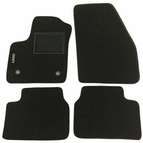 Set tappeti auto su misura in moquette con battitacco in plastica, anteriori e posteriori, con logo ricamato sul tappetino anteriore lato guida.Moquette nera di alta qualit� inodore.Bordatura in tessuto che evidenzia la forma e lo rende sportivo ed elegante.Battitacco in plastica al lato guidatore.Clip di fissaggio originali gia’ applicati al tappeto (posizionati come da foto).Dotata di strap antiscivolo su tutta l’area del tappeto e su tutti i pezzi che forma il set della vostra auto.