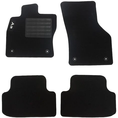 Set tappeti auto su misura in moquette con battitacco in plastica, anteriori e posteriori, con logo ricamato sul tappetino anteriore lato guida.