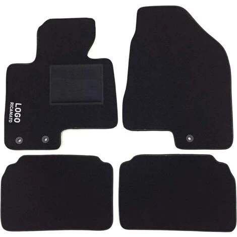 Set tappeti auto su misura in moquette con battitacco in plastica, anteriori e posteriori, con logo ricamato sul tappetino anteriore lato guida.