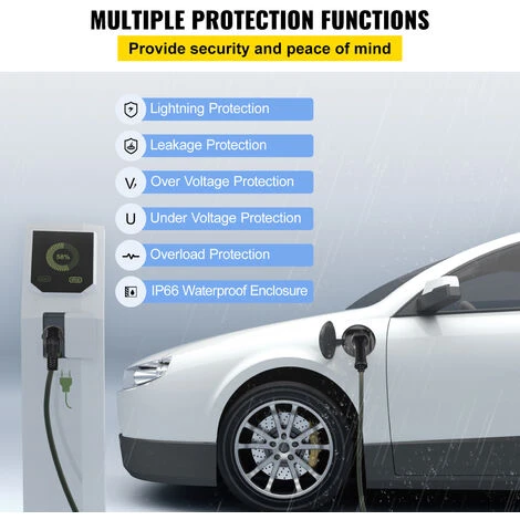 Un caricabatterie per veicoli elettrici di tipo 2 offre più livelli di protezione durante la ricarica, così puoi goderti la massima tranquillità. Come protezione da fulmini/perdite/sovratensione/sottotensione/sovraccarico.
