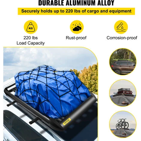 Realizzato in lega di alluminio, la capacità di carico massima arriva a 150 libbre / 68 kg, non preoccuparti del bagaglio pesante, perfetto per contenere bagagli / merci / snowboard sul tetto.